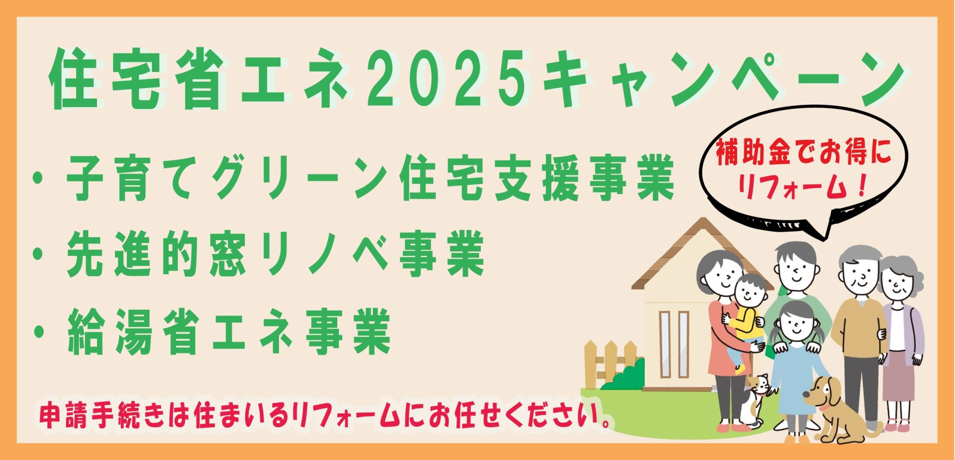 交付申請の締切は2025年12月31日までとなっております。補助金を利用してのリフォーム工事をご計画の場合、工事完了までのスケジュールを考えますと申請期間が少なくなってきております。まずは住まいるリフォームへご相談ください。