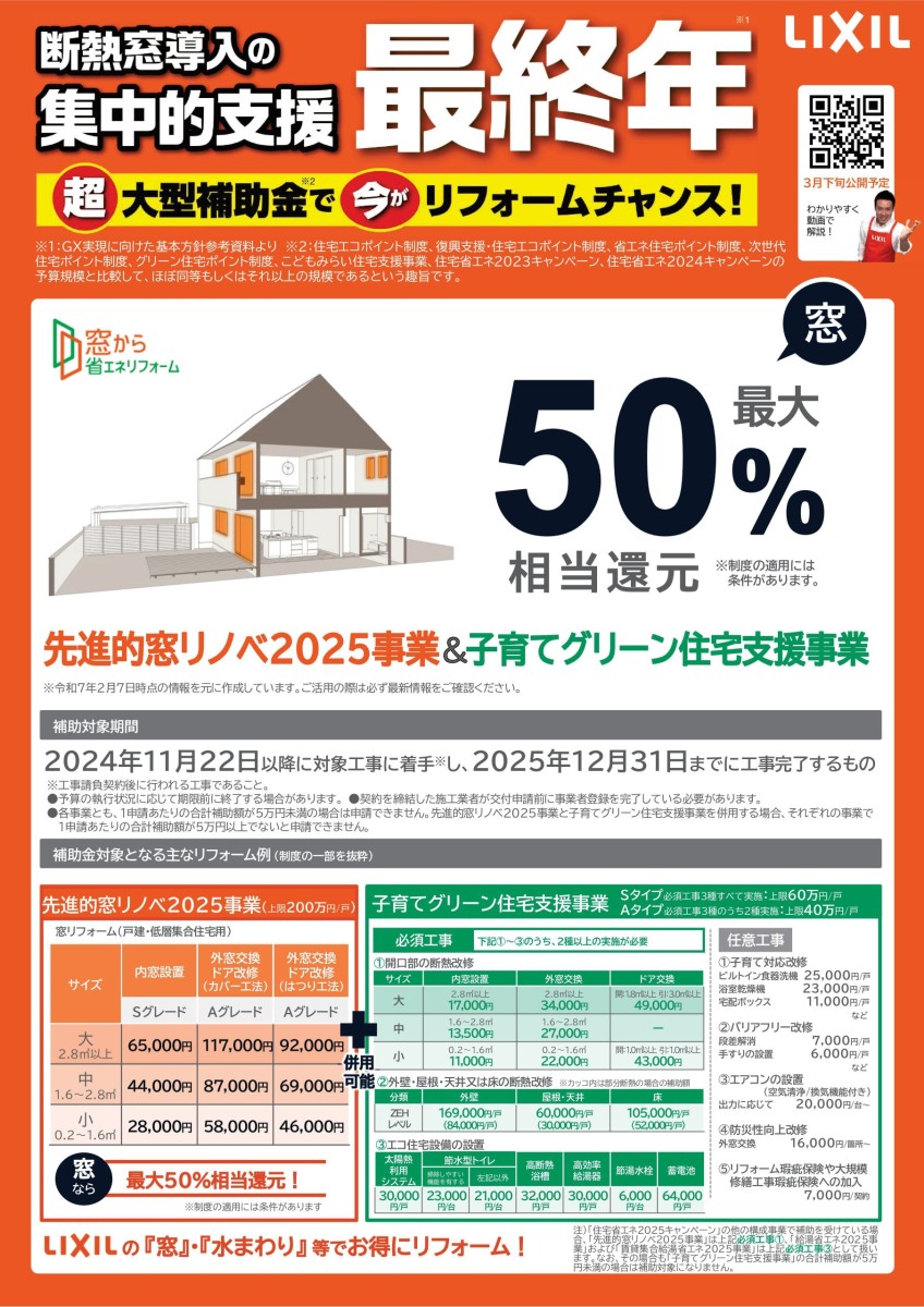 交付申請の締切は2025年12月31日までとなっております。補助金を利用してのリフォーム工事をご計画の場合、工事完了までのスケジュールを考えますと申請期間が少なくなってきております。まずは住まいるリフォームへご相談ください。