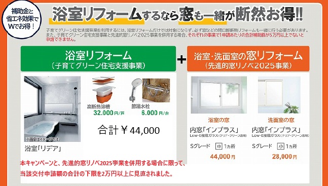 今回、本キャンペーンの他事業(「先進的窓リノベ2025事業」、「給湯省エネ2025事業」、「賃貸集合給湯省エネ2025事業」)を併用する場合に限って、