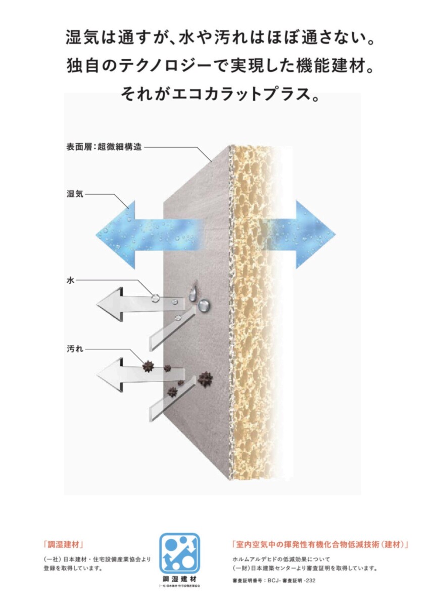 日々の暮らしの中で居心地の良い空間を造る内装壁機能性建材「エコカラットプラス」