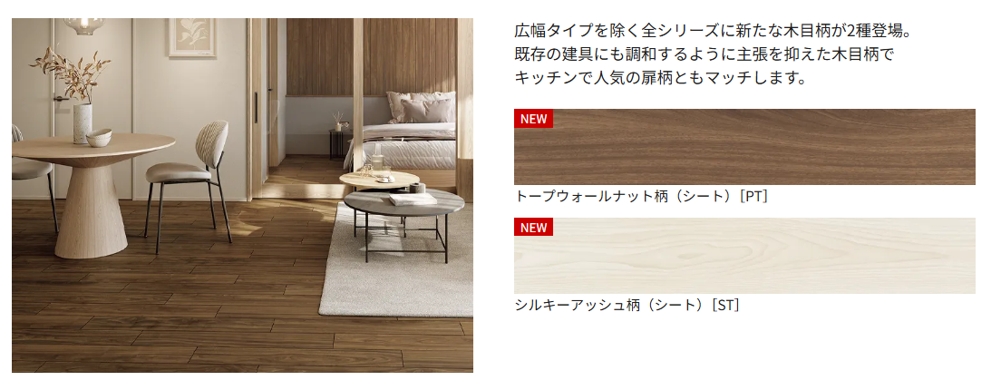 もちろん、ドアに合わせて収納建具や床材を選んでお好みのデザインにリフォームをすることができる建材などが各種揃っています。そのベリティスから2026年4月に発売される新商品をご紹介したいと思います。