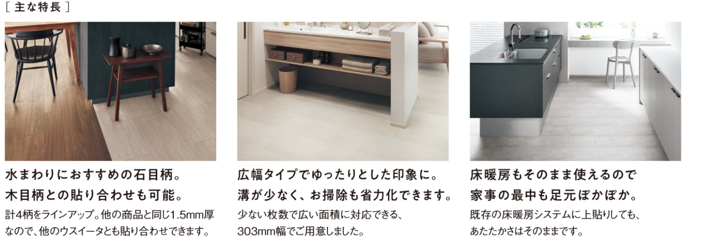 キッチンなど水まわりにおすすめの広幅の石目柄