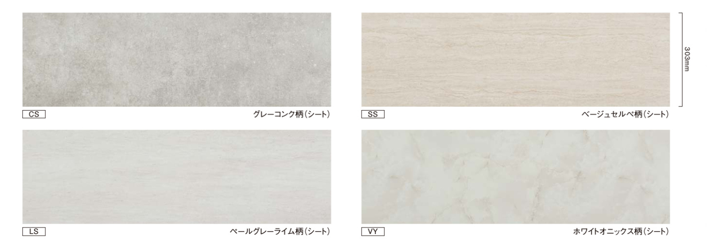 ベーシックカラーに新しくグレージュ2柄(グレージュオーク柄・ラピスグレー柄)と、セレクトカラー1柄(ペールグリーンオーク柄)が2026年4月に受注開始(予定)です。
