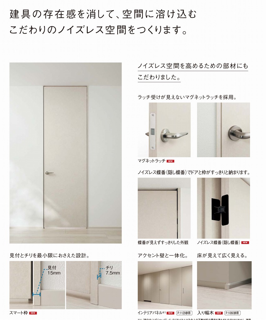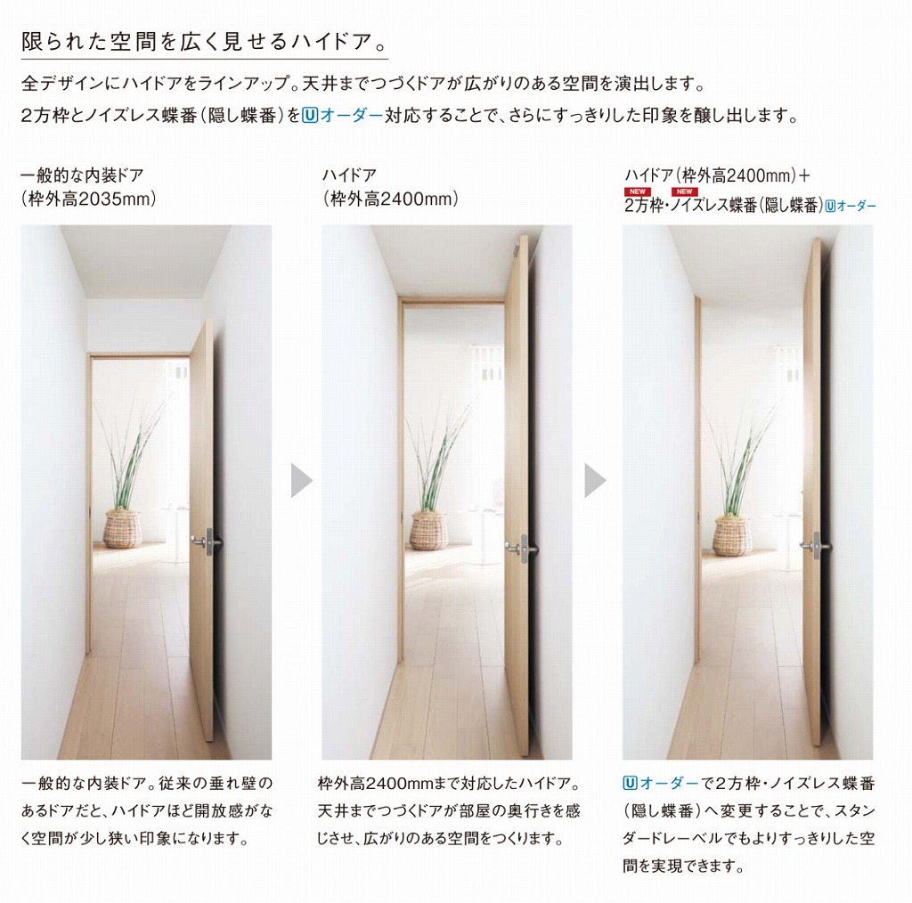 ★内装ドア:スタンダードレーベル・クラフトレーベル空間を広く明るく見せる「大採光デザイン」とプラスレーベル空間に溶け込み「ノイズレスなドア」