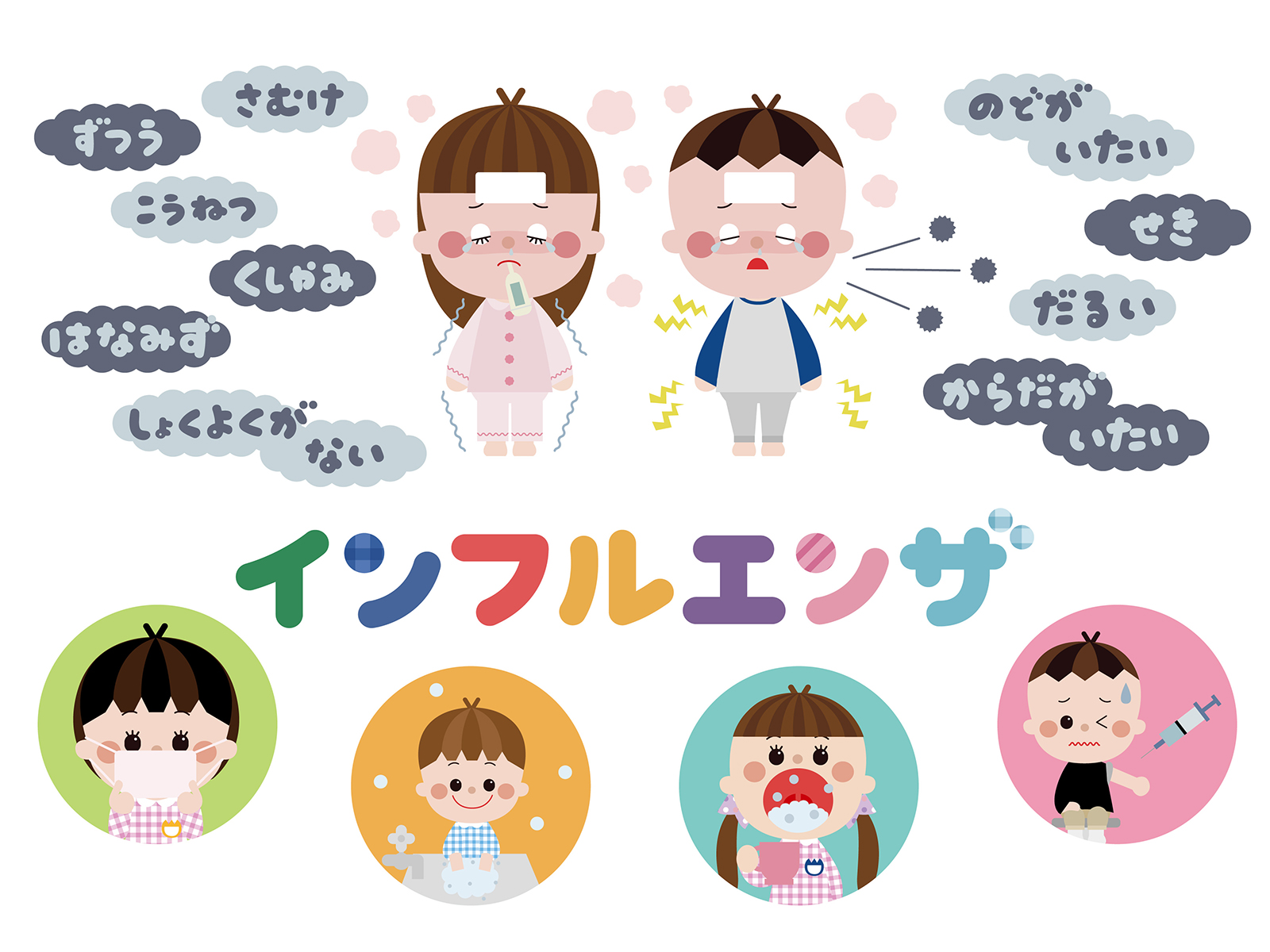 今季流行しているのは、A型インフルエンザと言われていて、感染力が強く、38℃以上の高熱、関節痛、筋肉痛といった症状が全身に急激にあらわれるのが特徴です。お子さんやご高齢の方、免疫力の低下している人がかかると重症化する恐れもあるインフルエンザの流行から身を守るため、予防をしっかりと行うことが重要です。インフルエンザは、感染すると2〜3日の潜伏期間を経て、発熱・寒気・頭痛などの初期症状が出ます。その後、鼻や喉の局所的な風邪の症状に加え、急な高熱・関節痛・筋肉痛や強い倦怠感など全身に症状が現れます。38℃以上の高熱が出た場合はお医者様の診断を受けましょう。