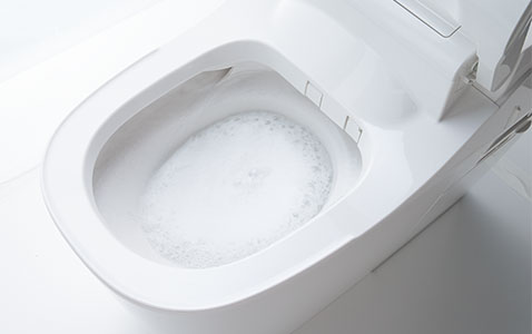 洗浄後、便器内をキレイに保つため3時間程、洗剤の泡が残ります。
