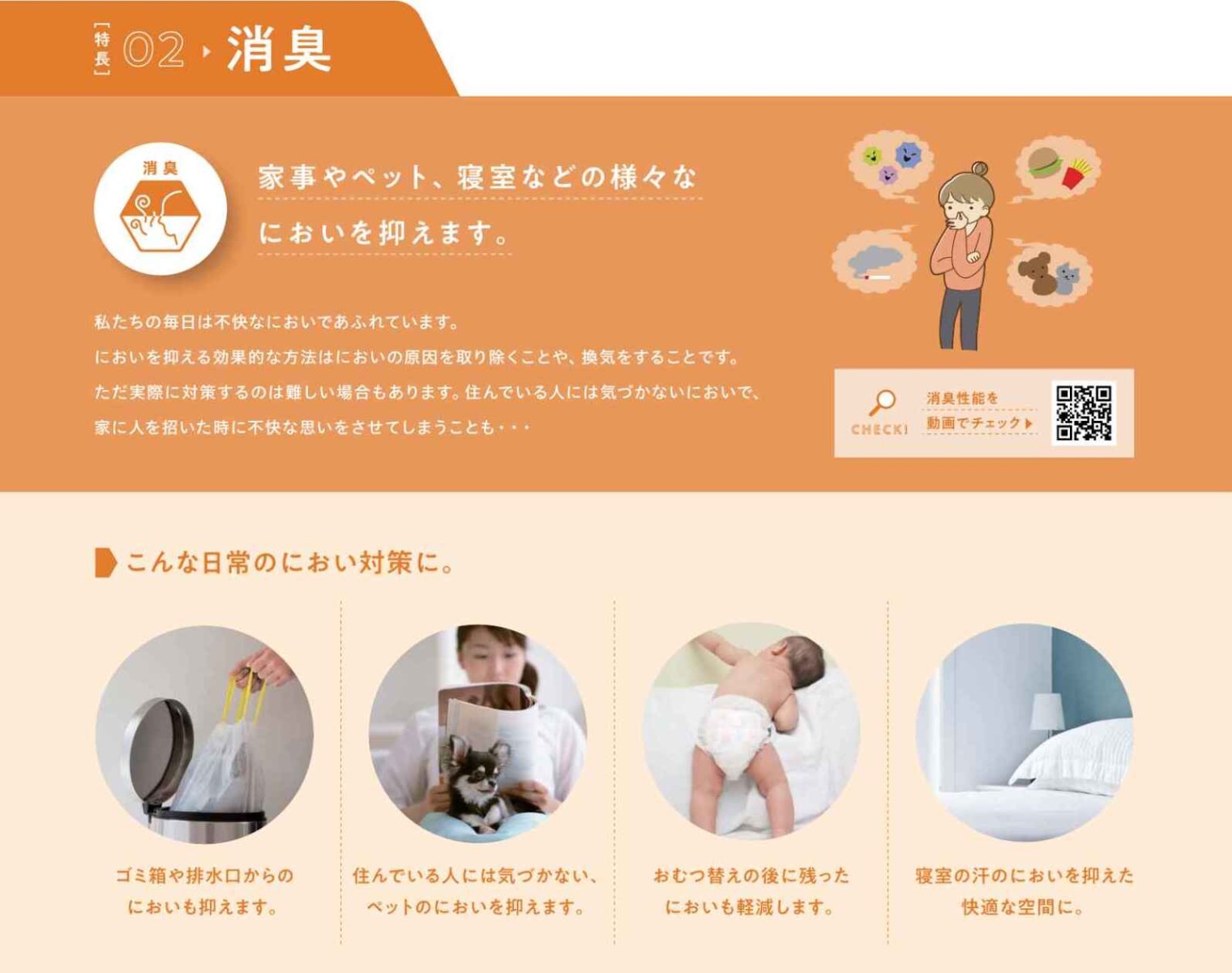 トイレ、生ゴミ、たばこ、ペット。ふだんの暮らしには、気になるにおいがたくさんある。エコカラットプラスはそれらにおいの原因となる成分を吸着。 珪藻土や壁紙より短時間ですっきり脱臭します。複数のにおいの成分が混ざった「複合臭」にも効果を発揮。住まいのあらゆる場所で活躍します。