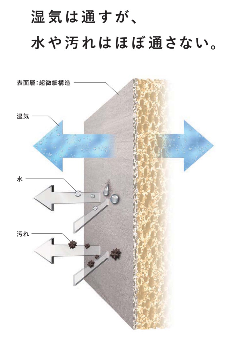 湿度が高い時は湿気を吸収し、乾燥している時は湿気を放出。エコカラットプラスは、すぐれた調湿性能で快適な湿度を保とうとします。その効果は珪藻土の約6倍、調湿壁紙の25倍以上もあるんです。だから結露を抑え、カビやダニの繁殖の抑制も期待できる。洗濯物の部屋干しにも、おすすめです。