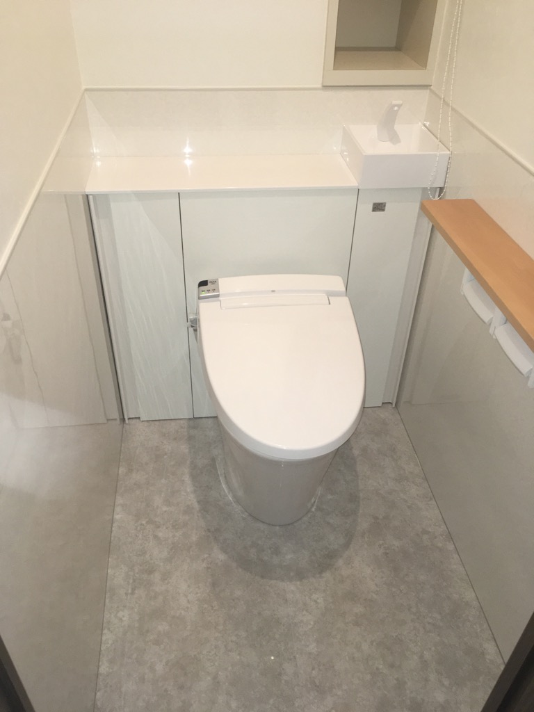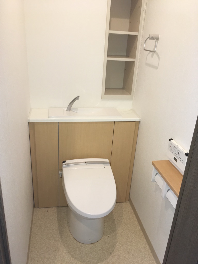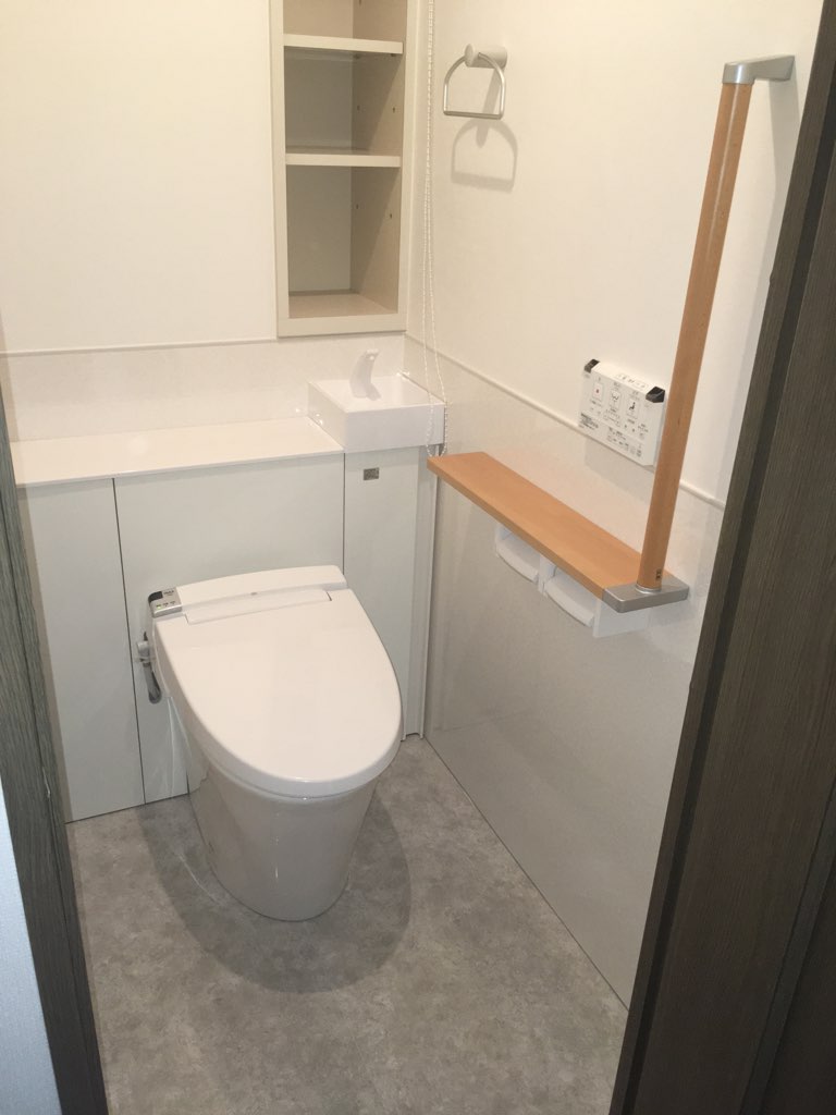 東大阪市 トイレリフォーム トイレ入れ替え工事 2018/12/04 【リフォーム内容】便器入替え、天井壁クロス張り替え、床セラミックシート張り、腰壁パネル張り 【使用商品】リクシル:リフォレ TOTO:床 フロアJ 手すり付き紙巻き器 アイカ:セラール 【工期】2日 【リフォーム費用】¥300,000 施工前 施工後 施工後 東大阪市、八尾市、柏原市、藤井寺市、羽曳野市、奈良でトイレ入替え工事のことなら住まいるリフォームへ!!