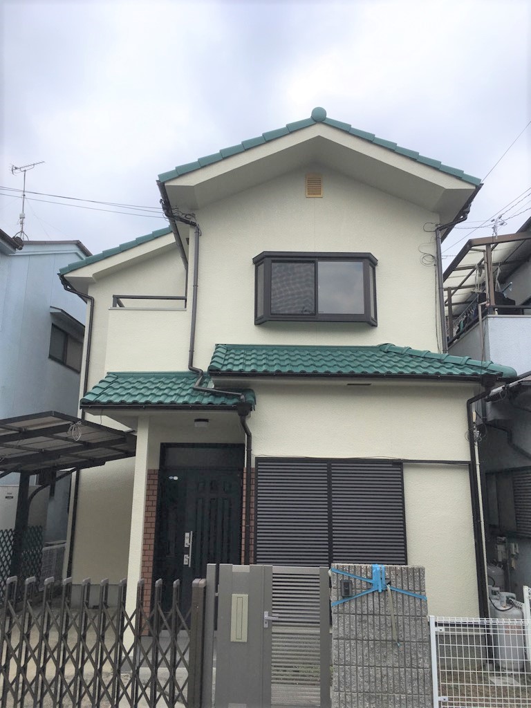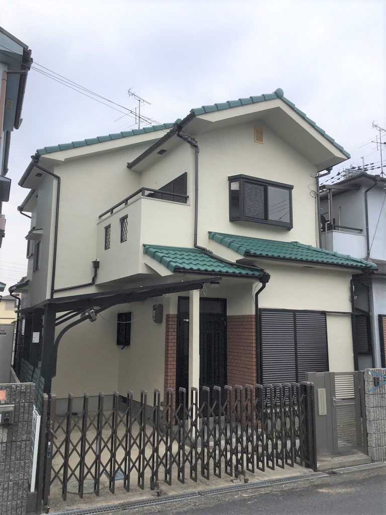 北葛城郡河合町 外装リフォーム 外壁、屋根塗装工事 2020/04/02 【リフォーム内容】戸建住宅:屋根、外壁塗装工事 【工期】7日 【使用商品】日本ペイント:オーデフレッシュSI100Ⅲ 大同塗料:ハイルーフマイルドシリコン 【リフォーム費用】¥1,200,000 施工前 施工後 施工後 東大阪市、八尾市、柏原市、藤井寺市、羽曳野市、奈良で外装リフォームのことなら住まいるリフォームへ!!