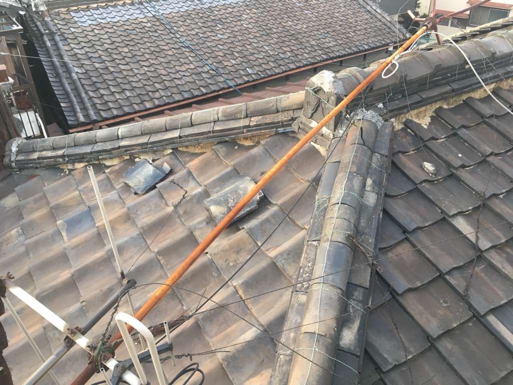 東成区で瓦葺き替え工事始まりました。 2017/11/16 築50年以上の和瓦のお宅で雨漏りをしていました。和瓦を撤去してガルバリウム合板の軽量瓦に葺き替えます。完成しましたら施工事例に載せますので是非ご覧下さい。
