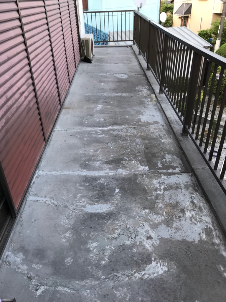 柏原市 ベランダ防水工事 2018/06/27 【工事内容】既存の防水材を取り除き、左官工事で新たに下地をつくりウレタン防水で仕上げました。【工期】3日 【施工費】¥120,000 施工前 施工中 左官下地 施工後① 施工後② 東大阪市、八尾市、柏原市、藤井寺市、羽曳野市、奈良で防水工事のことなら住まいるリフォームへ!!