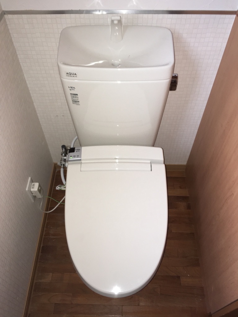 ウォッシュレットが故障しておりウォッシュレットのみの取り換えをご検討されておりましたが、節水型やフチがなく掃除のしやすい便器のご案内をしましたら便器も一緒に入れ替えることになりました。約69%節水、汚れの付きにくいアクアセラミック、フチなしでお掃除のしやすいリクシルのアメージュZ便器(フチレス)へ入れ替えました。
