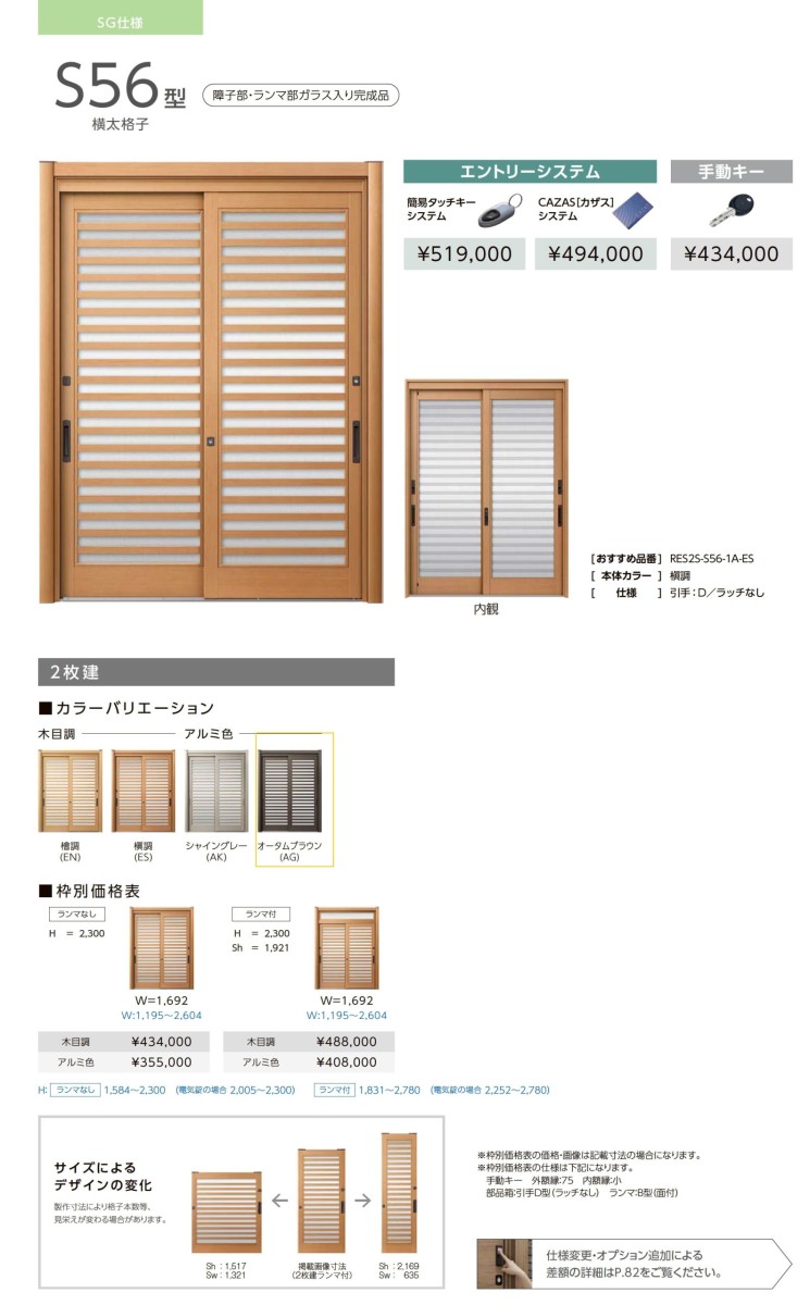 【玄関引戸】LIXIL:リシェントS56型 ランマなし 横太格子 オータムブラウン
