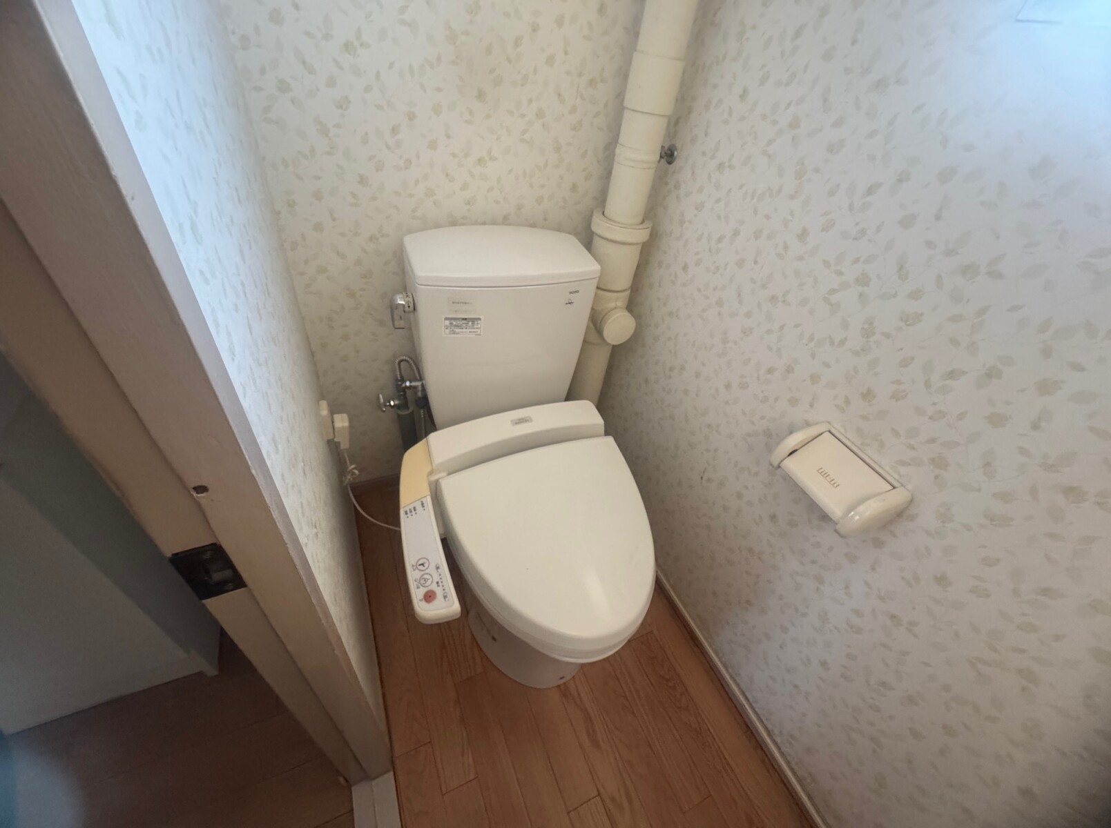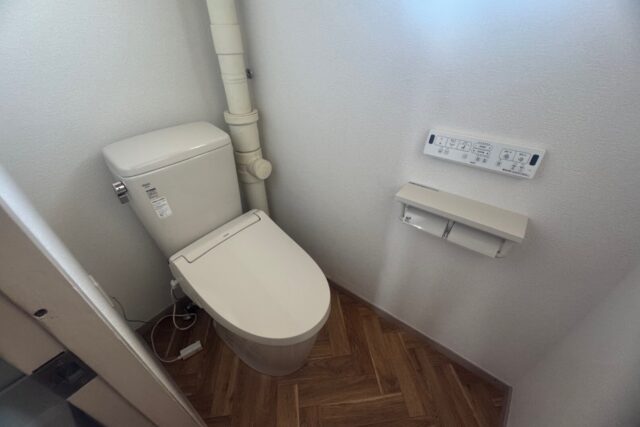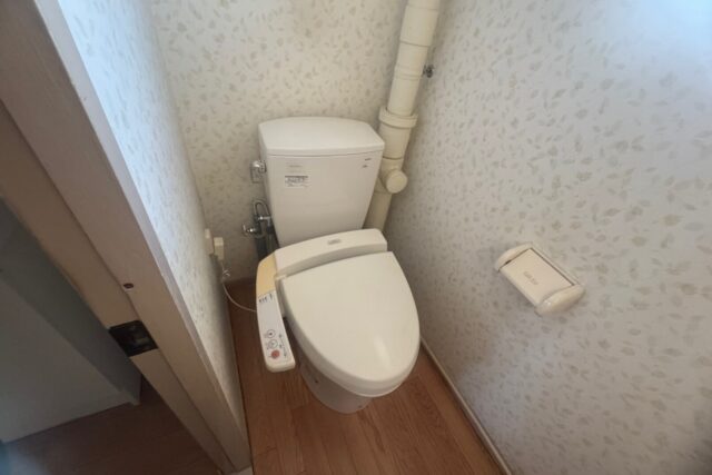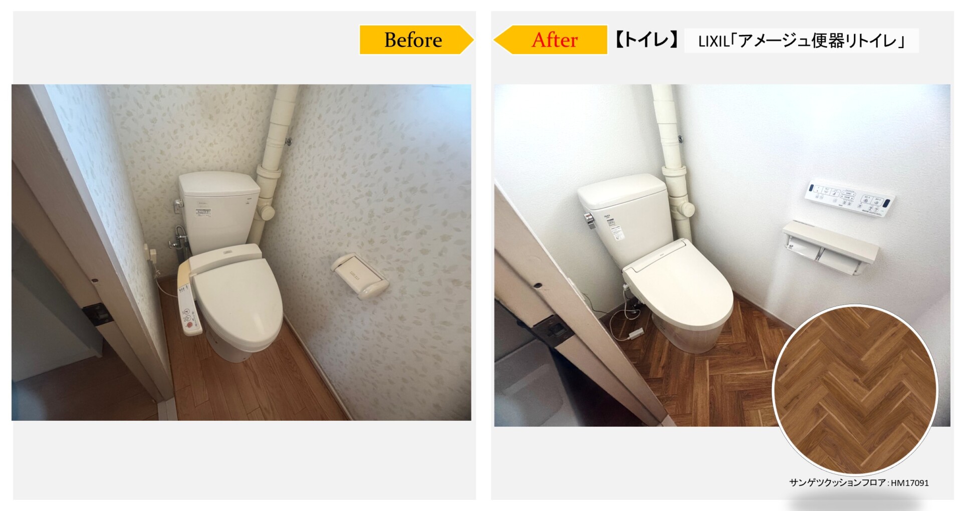 既存トイレ撤去→新規トイレ取付け→天井、壁クロス張替え→床クッションフロア張替え