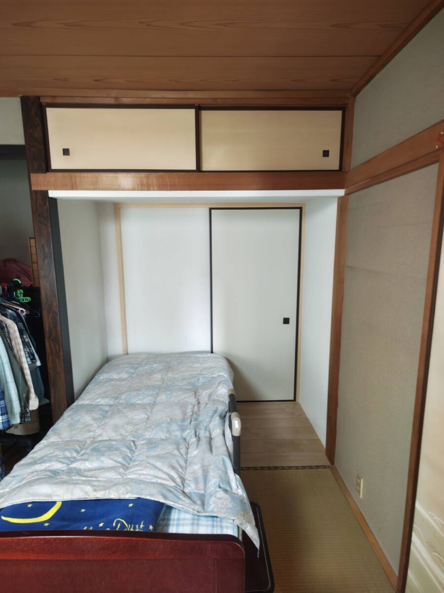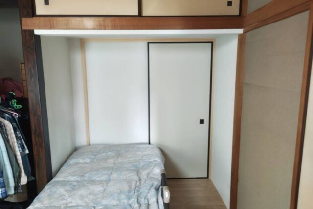 押入・中段解体工事 ※天袋残し→壁・床 下地補修→戸袋新調→新規襖枠取付 敷居・鴨居・枠→床フローリング張り→天井・壁クロス貼り ※施工範囲のみ