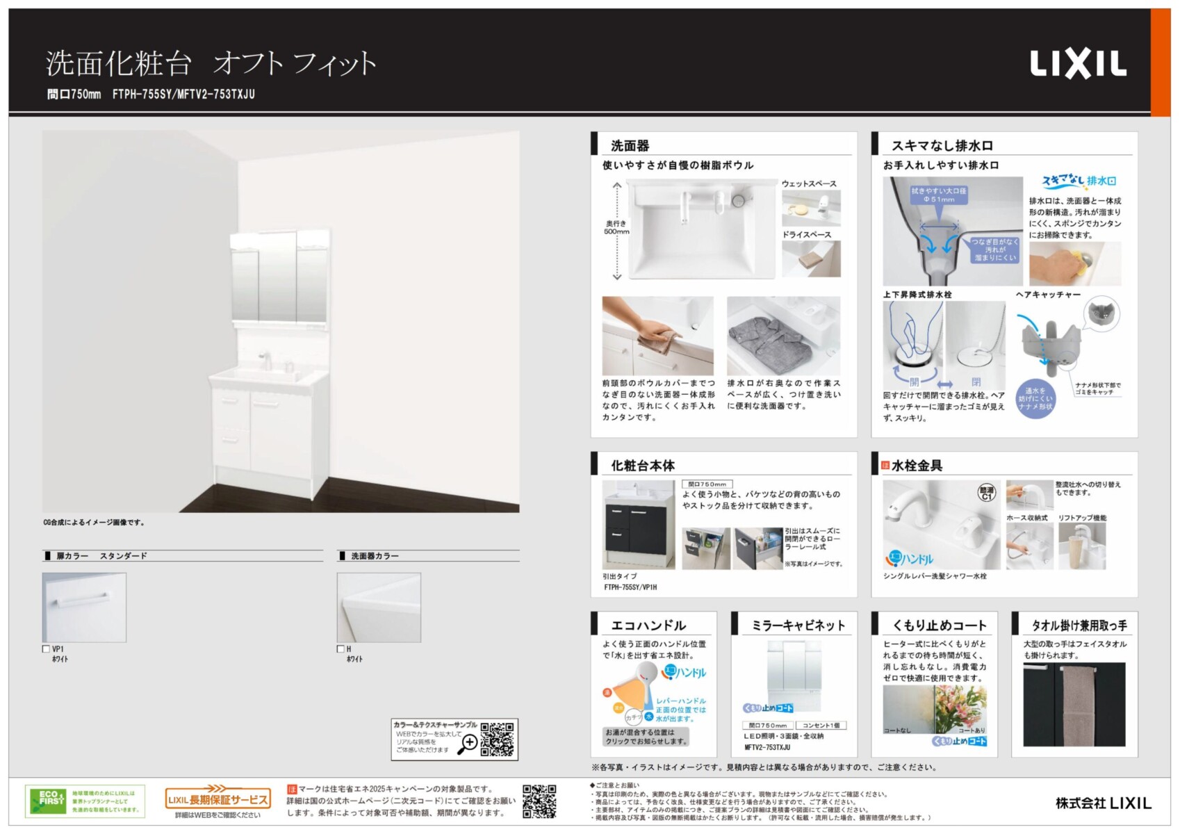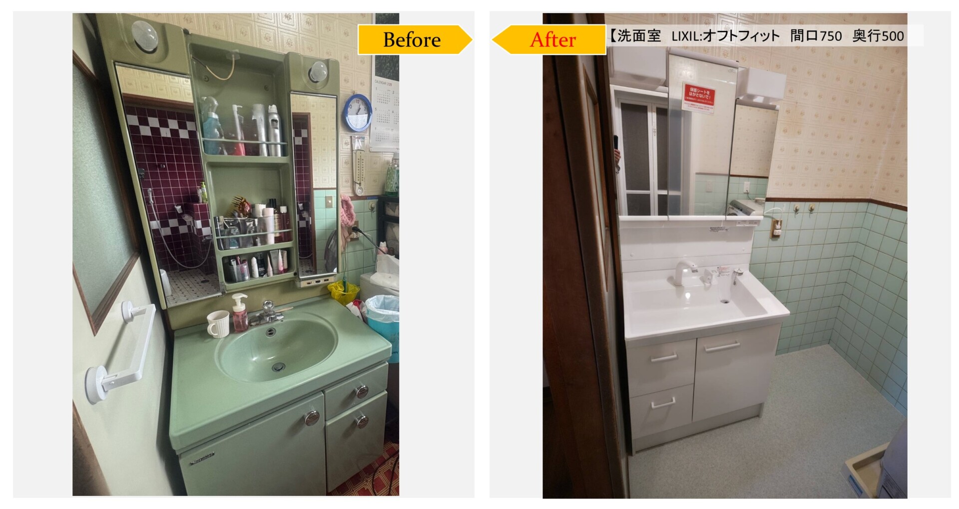 【洗面室+内窓】LIXIL:オフトフィット W750 奥行500 内窓インプラス