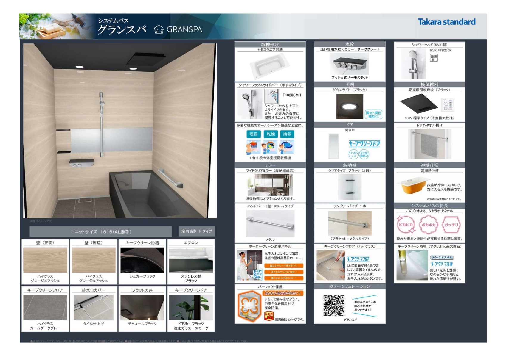 【浴室】タカラスタンダード「グランスパ」 1616サイズ パネル:ハイクラス「グレージュアッシュ」