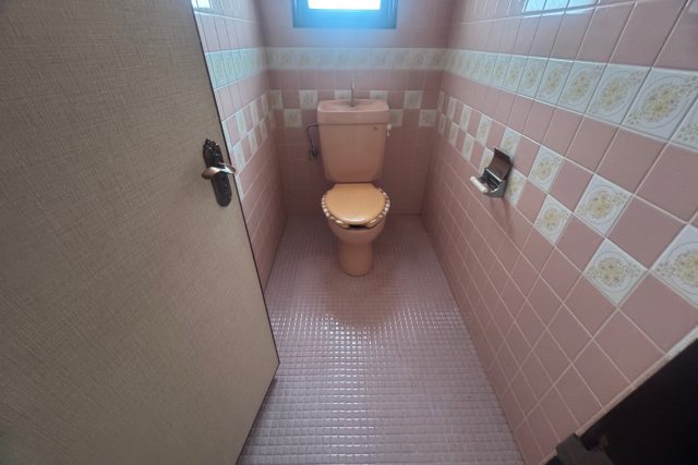 既存トイレ撤去→壁下地工事→床下地工事→コンセント新設→クロス張り→床クッションフロア張り→新規トイレ取付