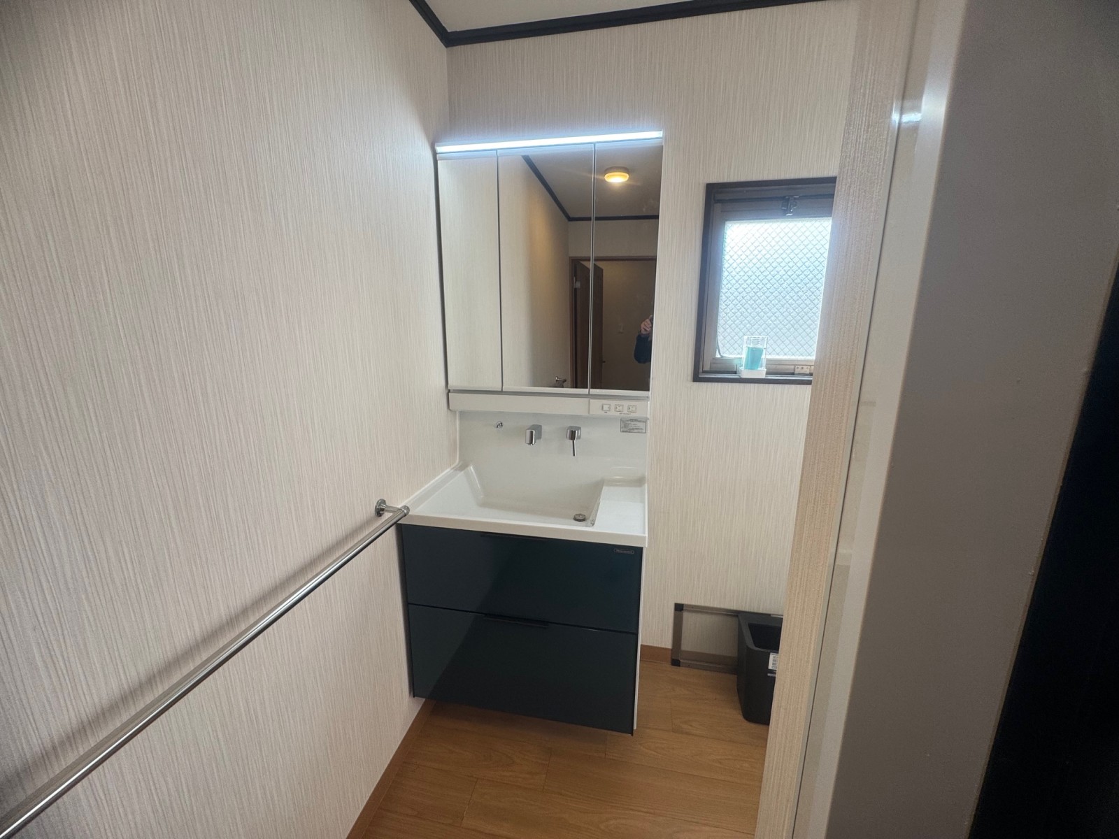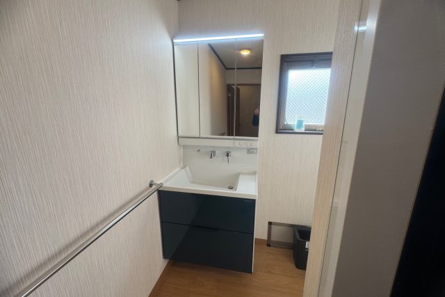 既存洗面化粧台撤去→新規洗面化粧台取付け