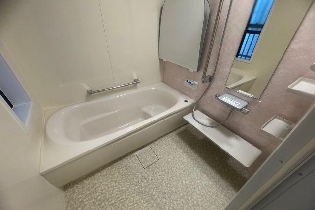 既存浴室解体→ 給排水工事(給水・給湯・排水・アダプタ取替)→電気工事(照明、換気扇)→土間調整→ユニットバス組立→間仕切り壁補修