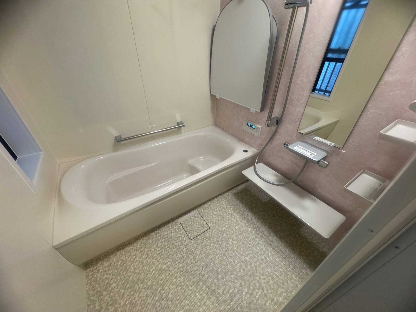 弊社のホームページをご覧頂きお問合せフォームより、浴室とトイレの取替えをご相談頂きました。浴室は水はけの良いお掃除がラクな床で、お湯が冷めにくい高断熱浴槽のTOTO「サザナ」をご提案させて頂きました。優しい色合いの浴室アクセントパネルと、既存トイレと同じ色合いの可愛いピンクのトイレ便器をお選び頂いて工事ご依頼になりました。浴槽の上と手すり兼用のシャワースライドバーで、安全に入浴をお楽しみいただけます。工事後、仕事が丁寧で良かったですとお言葉を頂きました。