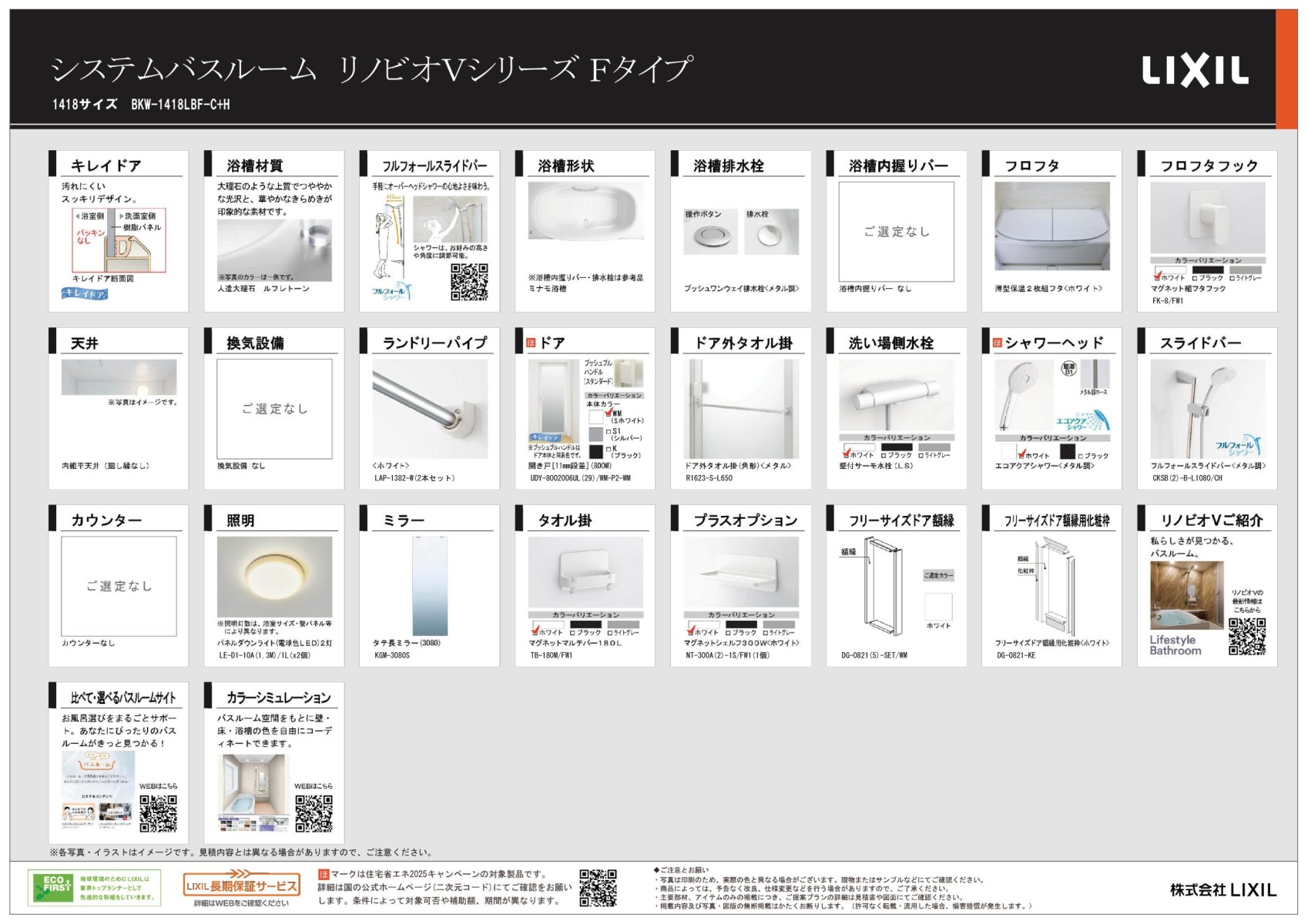 【浴室】LIXIL:リノビオV Fタイプ 1418サイズ アクセントパネル:クオーチェトープ