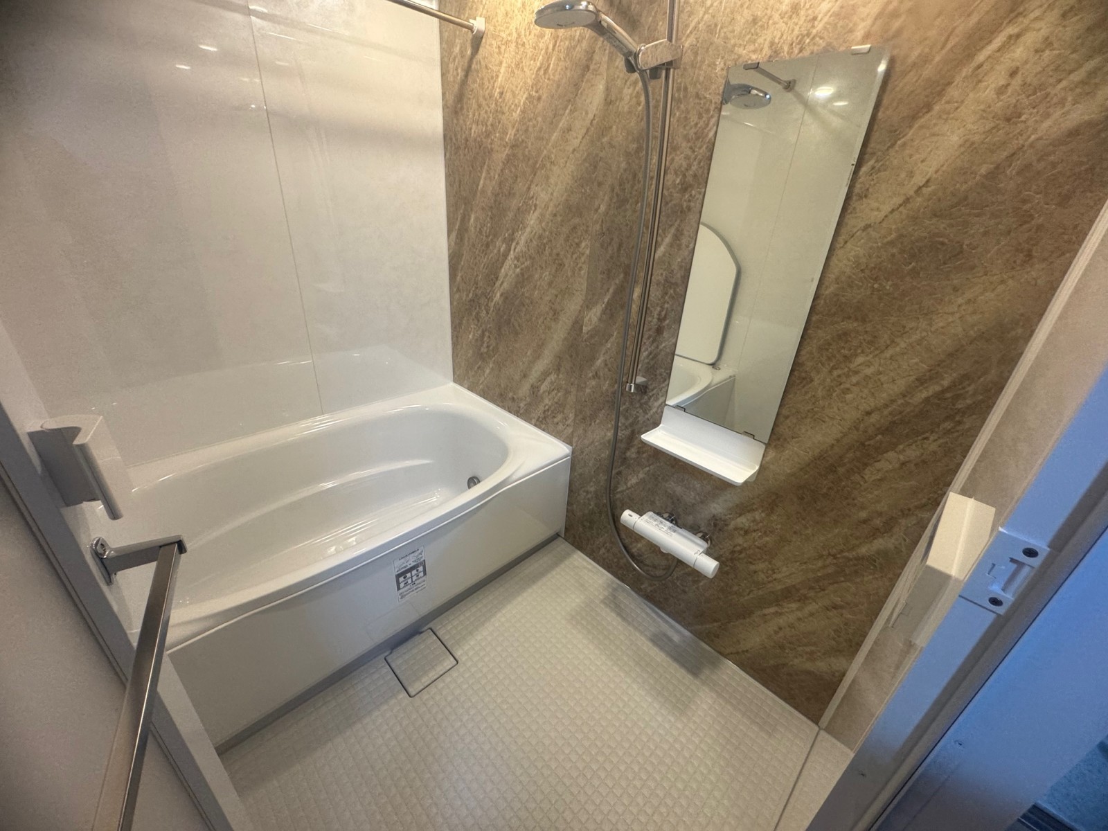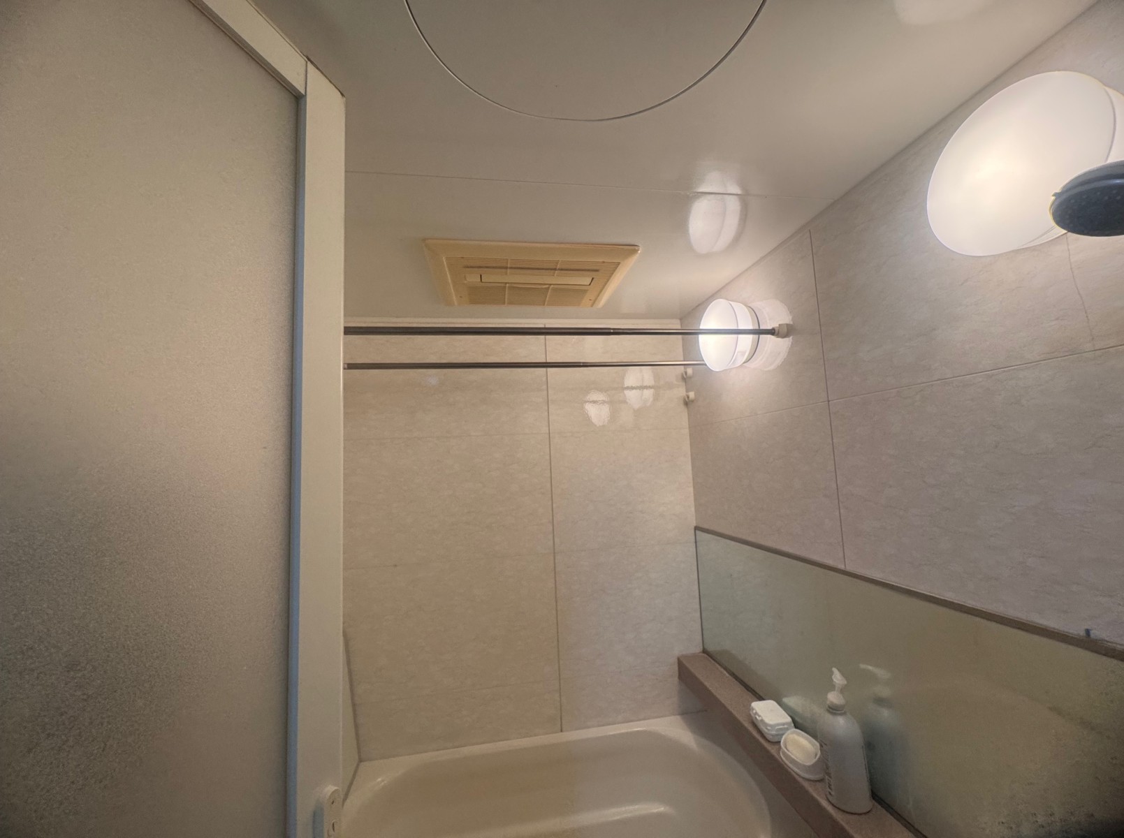 既存ユニットバス解体→給排水工事(給水・給湯・排水・アダプタ取替)→電気工事(照明・換気扇)→新規ユニットバス組立→間仕切り壁補修