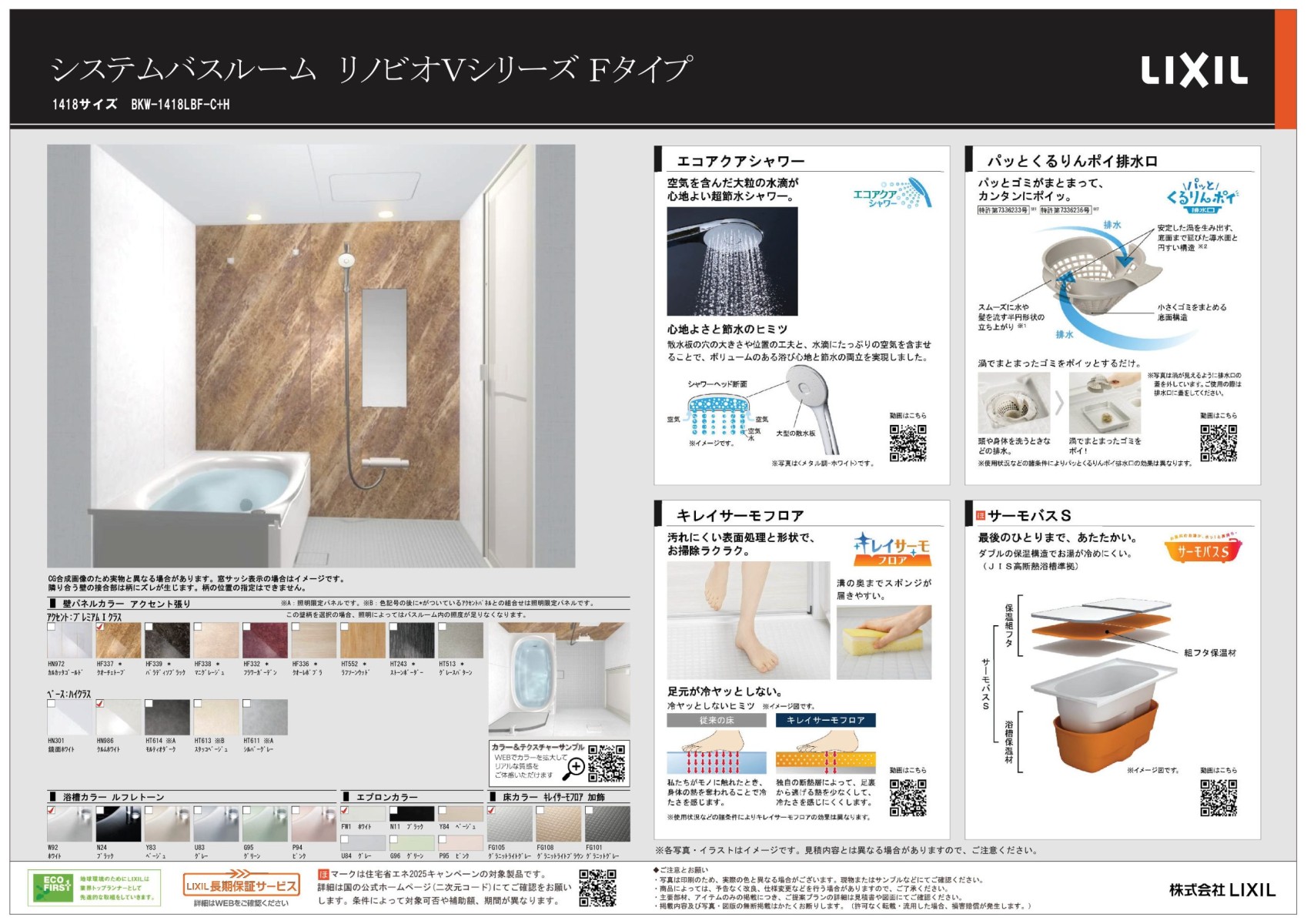 【浴室】LIXIL:リノビオV Fタイプ 1418サイズ アクセントパネル:クオーチェトープ