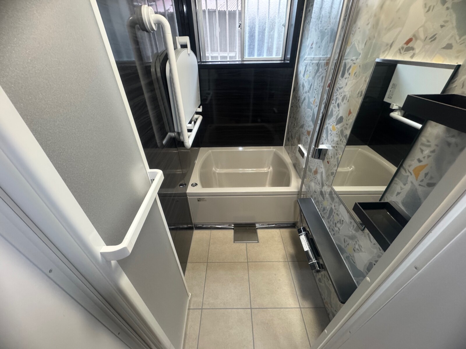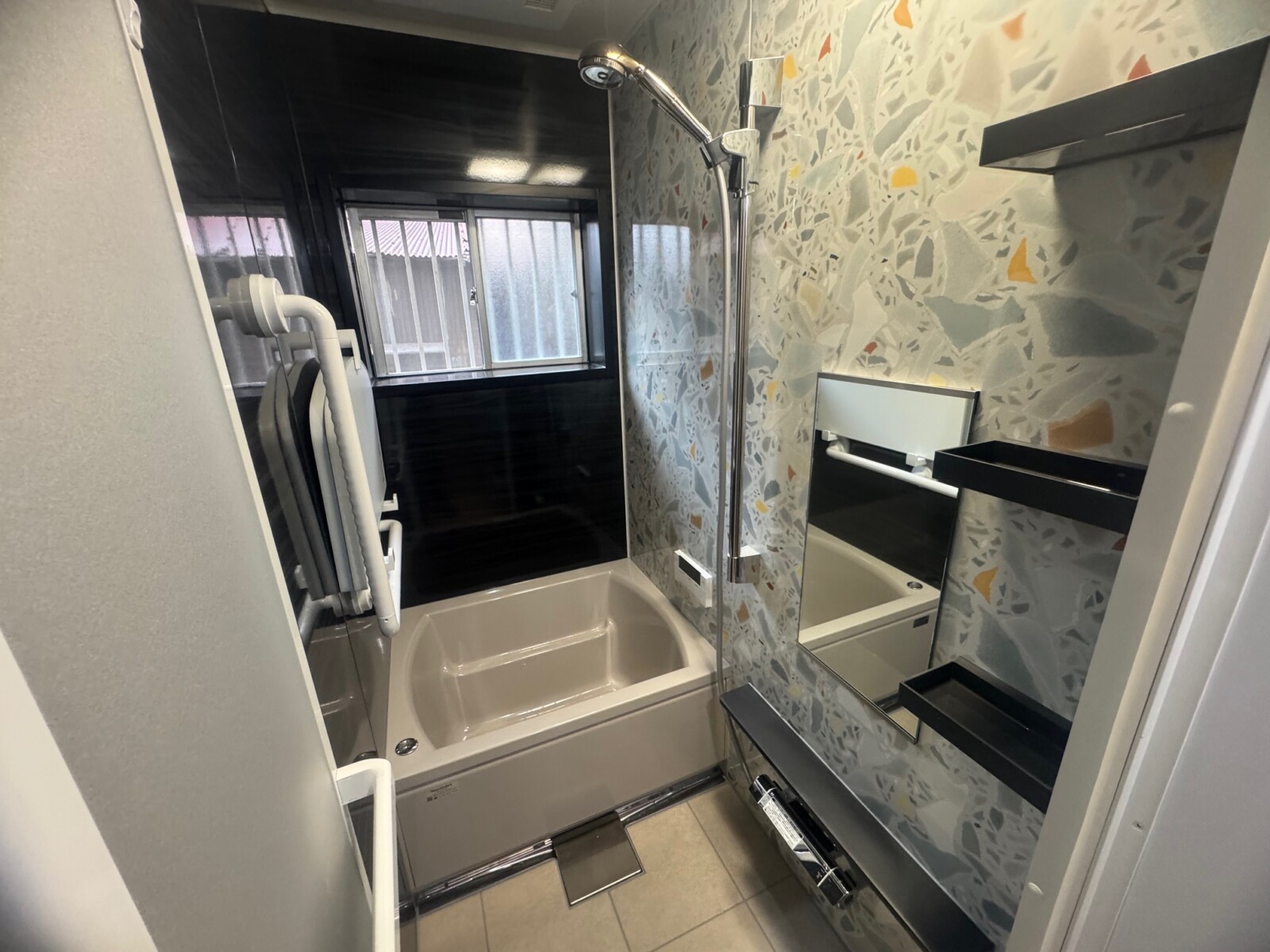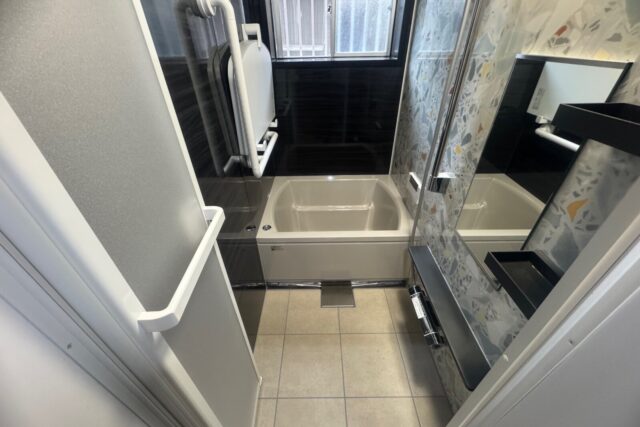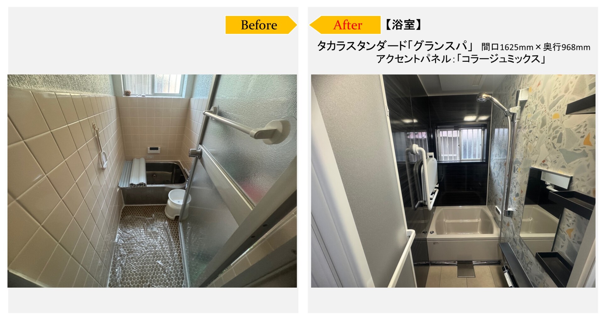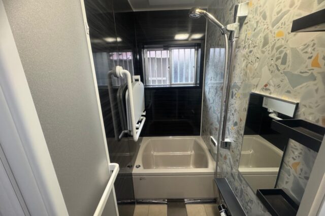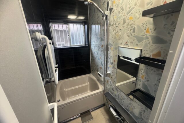 弊社のホームページをご覧頂き、浴室リフォームのご相談を頂きました。現地調査で、現状の寸法1650×950で、約20mmほど広げることができるのを確認し、今ある浴室空間を無駄なく使えてぴったりなサイズが選べるタカラスタンダードの「グランスパ」でプランを作成しご提案させて頂きました。その後、ショールーム見学に行かれて、浴槽や壁パネルや床のカラーなど仕様を決めて頂きご依頼となりました。浴室全体をまるごと保温材で包み込む断熱構造で、冬場に冷え込む浴室も温かく快適になりました。また、タカラスタンダードでは、独自に開発した頑丈なフレーム架台を採用しているため震度6相当の揺れにも負けない浴室で安心してご利用頂け、アート作品の様アクセントパネルの柄で華やかな浴室に仕上がりました。