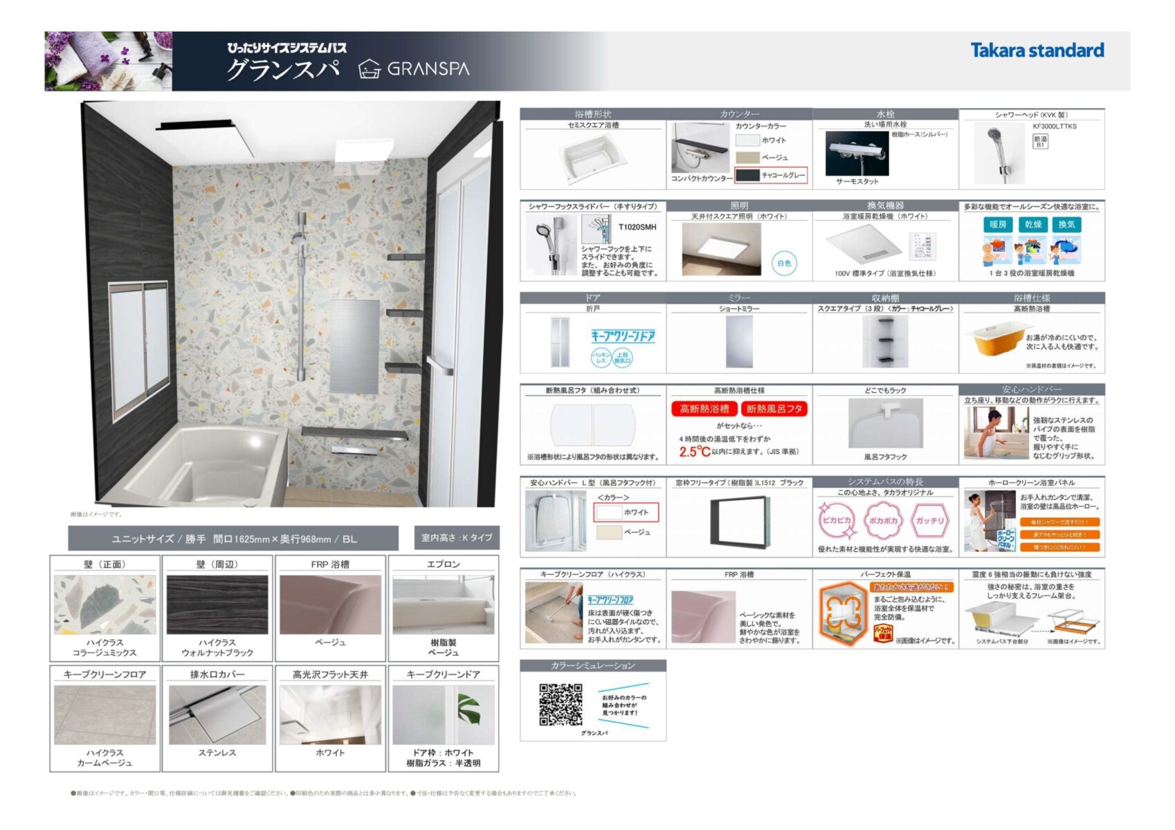 【浴室】タカラスタンダード「グランスパ」サイズ 間口1625x奥行968