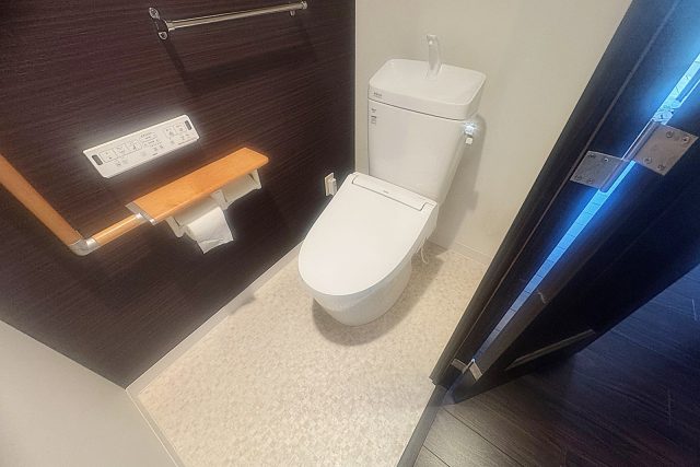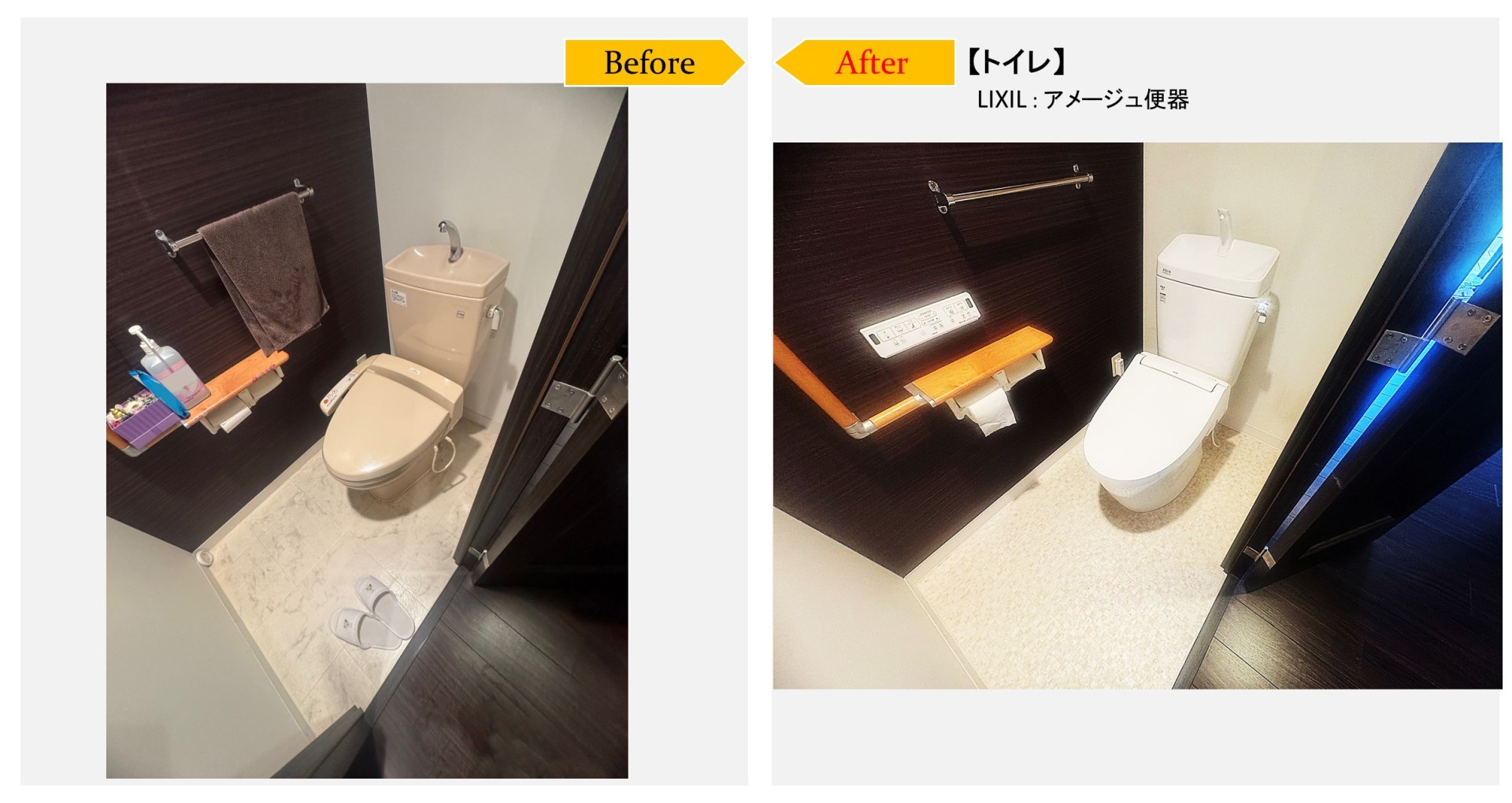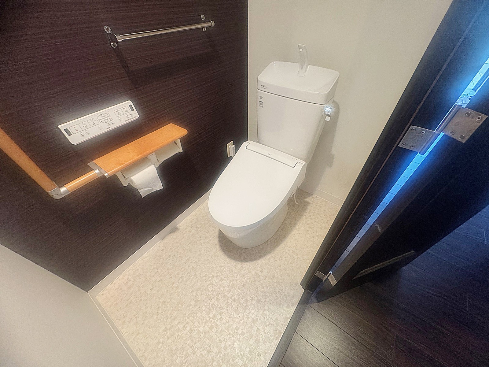 既存トイレ撤去→新規トイレ取付け→床クッションフロア張替え→ソフト巾木張替え