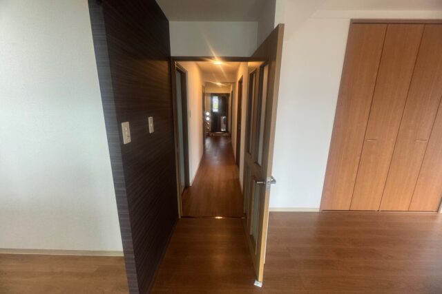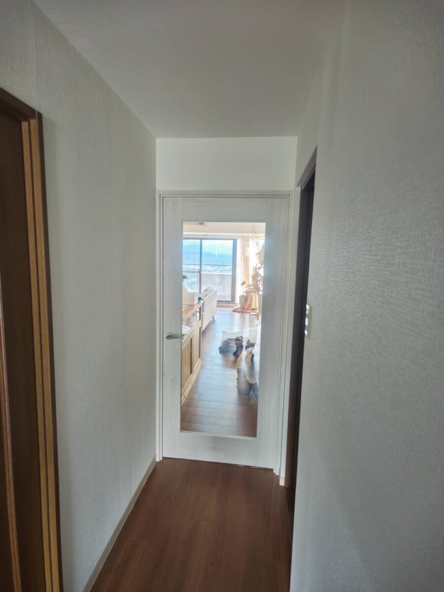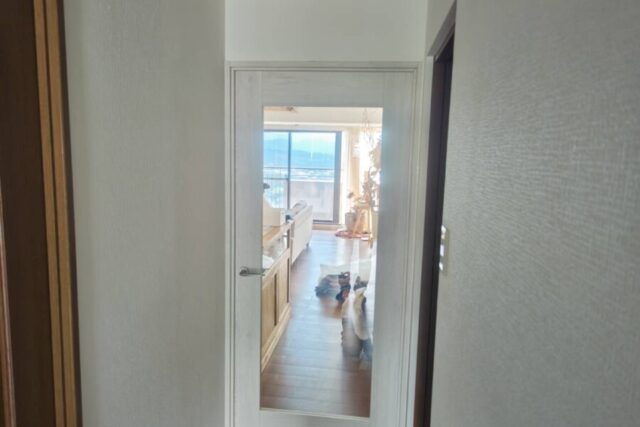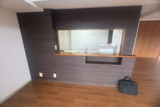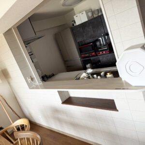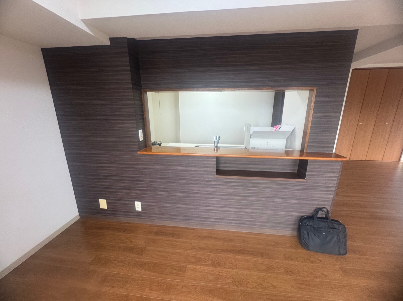 内装:建具取替え(パナソニックLC型)→キッチン前垂れ壁撤去(撤去跡下地補修)→カウンター、無地枠取替え→クロス張替え