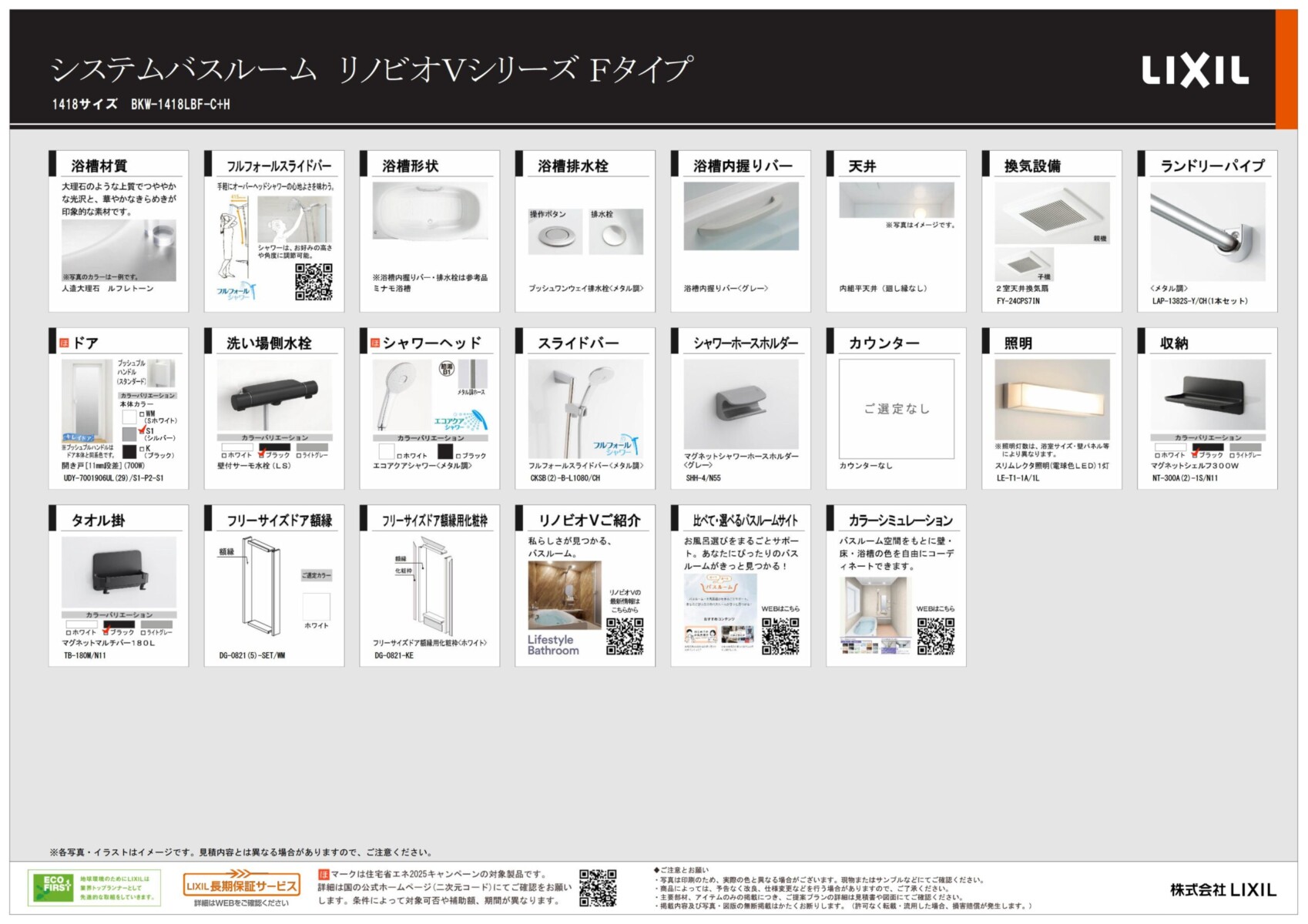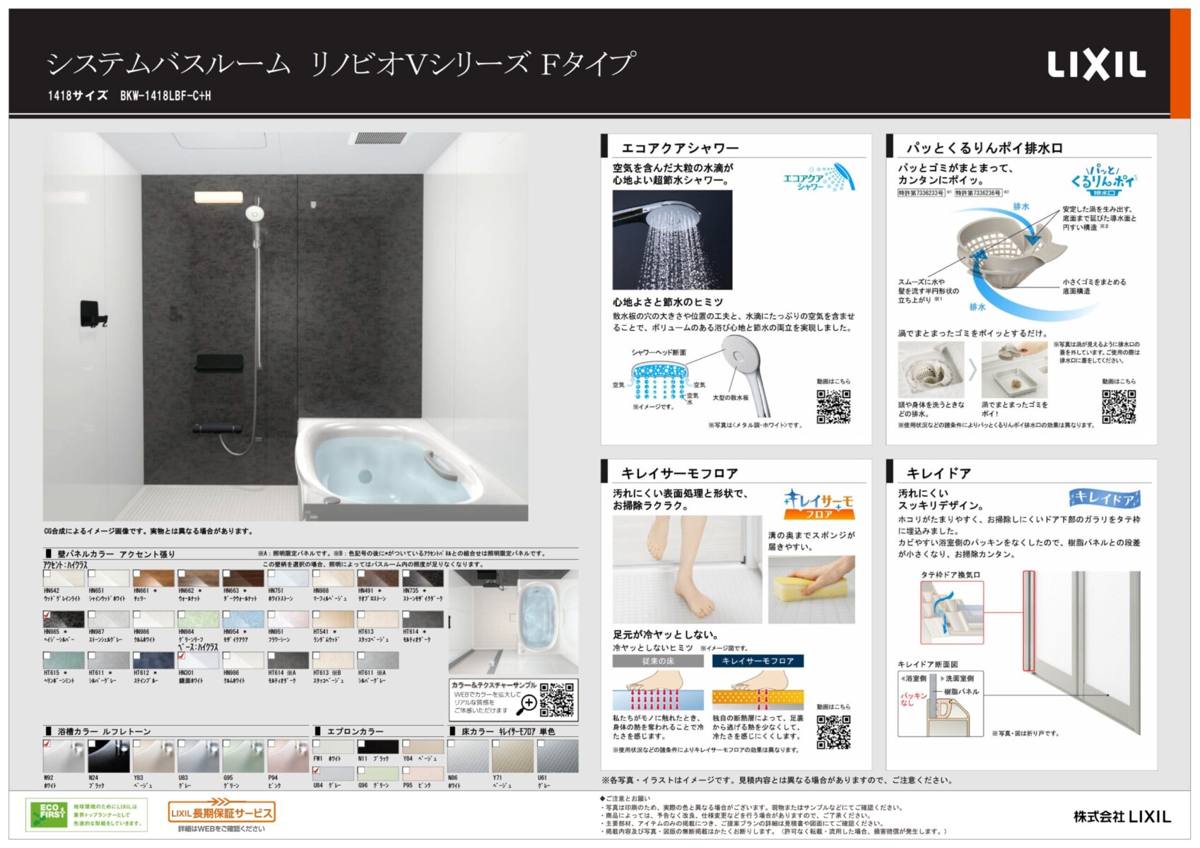 【浴室】LIXIL:リノビオV Fタイプ 1418サイズ