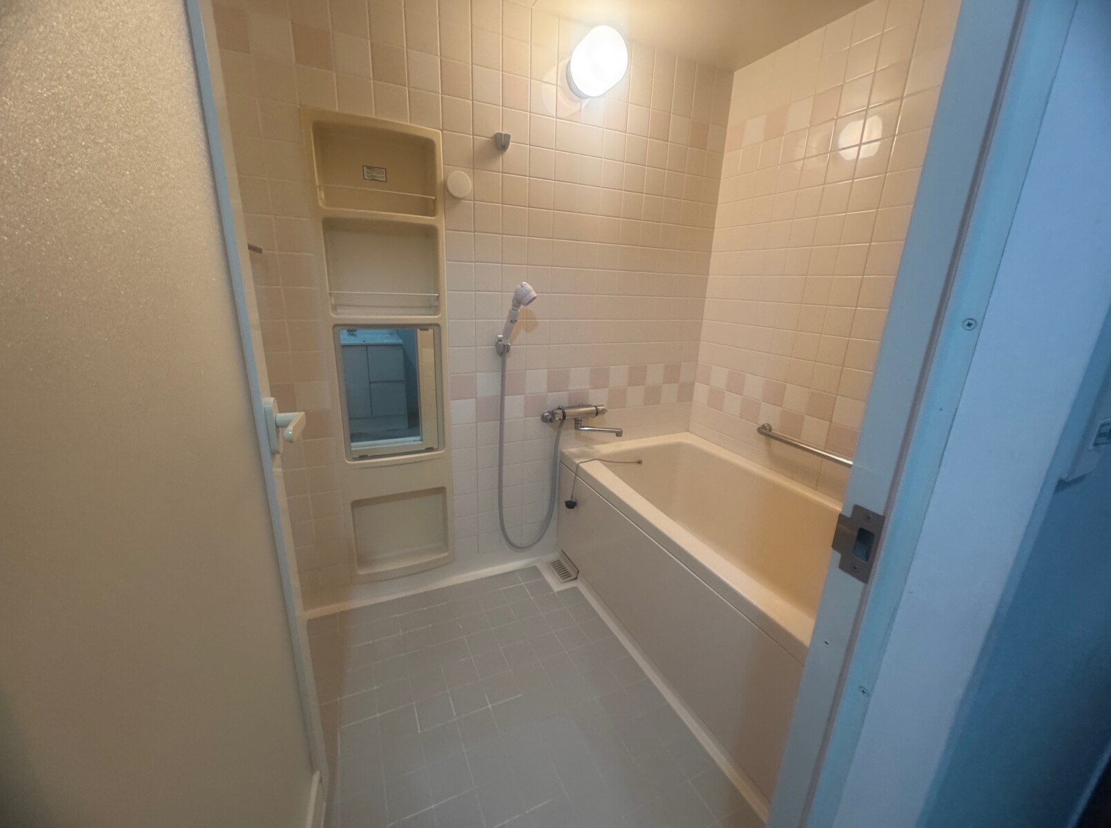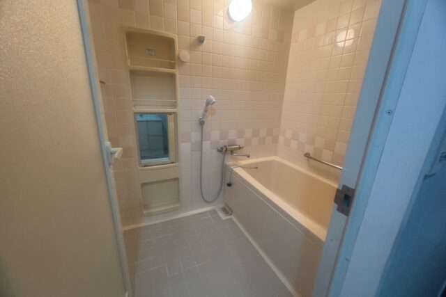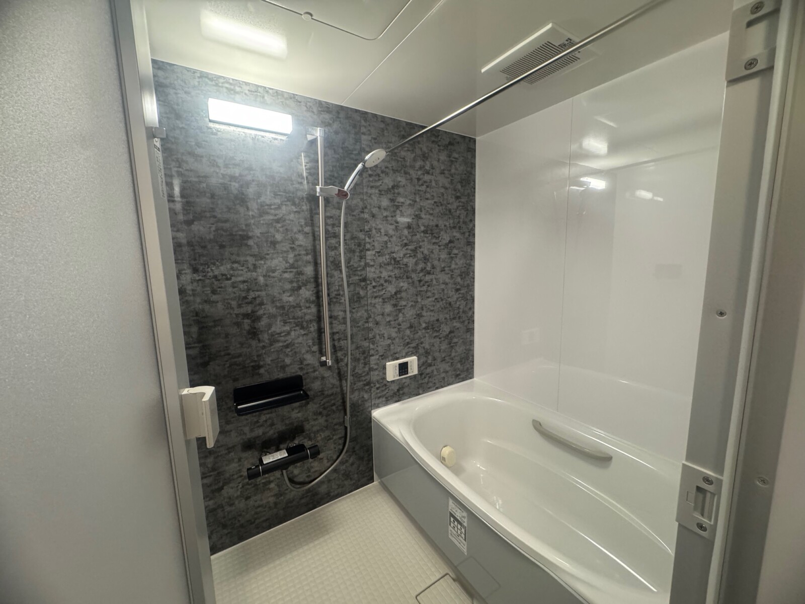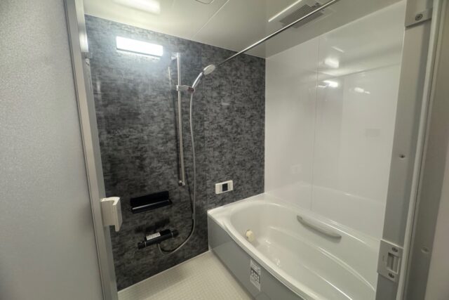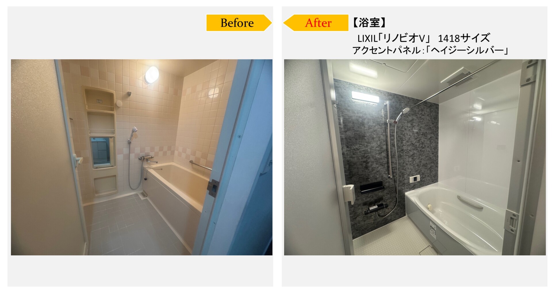 既存ユニットバス解体→給排水工事(給水・給湯・排水・アダプタ取替)→電気工事(照明・換気扇)→新規ユニットバス組立→間仕切り壁補修