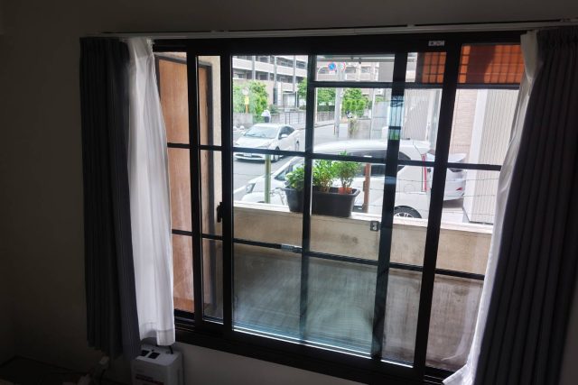 中古マンションをご購入で、入居前に内窓を取付けたいとご相談頂きました。インプラスの取り付けに必要な窓枠の有効方向の寸法は、引違い窓の場合70mm以上で、足りない場合、ふかし枠(窓枠の奥行きを延長するために取り付ける部材)で、内窓が取り付けられるスペースを確保し、外窓との間隔を広げることで断熱性や防音性を高めたり、外窓の開閉機構との干渉を防いだりすることができることをご説明させて頂き工事ご依頼となりました。工事完了後、先進的窓リノベ事業の補助金申請をさせて頂きました。