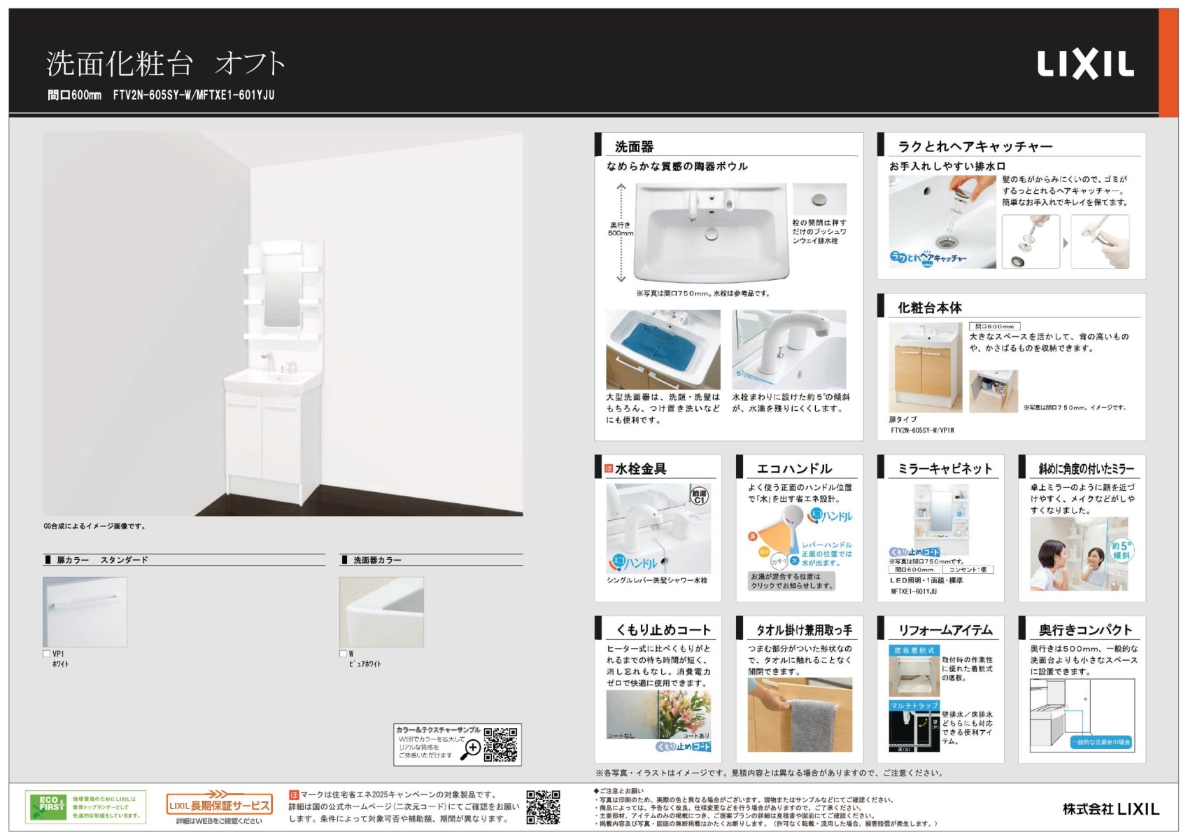 【洗面室】LIXIL:オフト W600