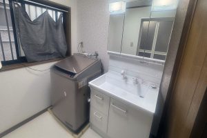 【寝屋川市】戸建住宅の洗面室リフォーム工事と浴室ドア取替え